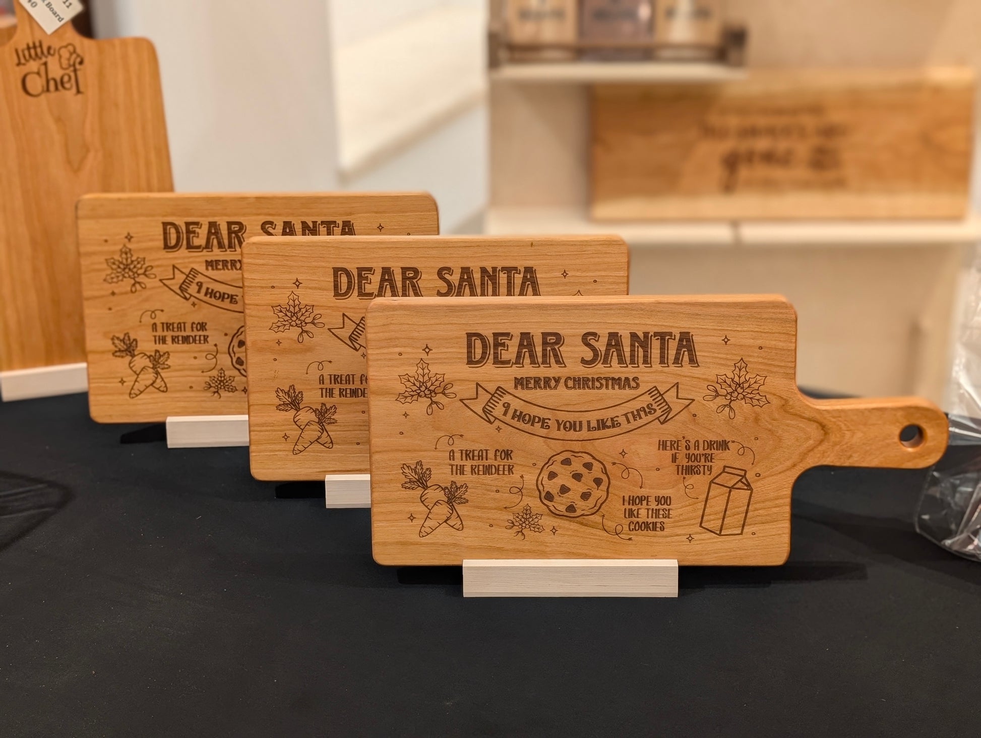 Celebrate the holidays with our Santa snack board. Use to display Santa's milk and cookies on Christmas Eve or serving up your favorite holiday treats.